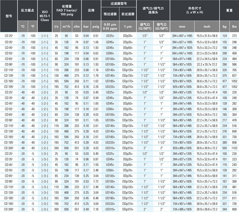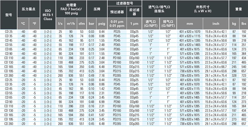 完整的吸附式空氣干燥機系列,適用于露點要求在 -20 至 -70° C 之間的各種行業(yè)和應用場合