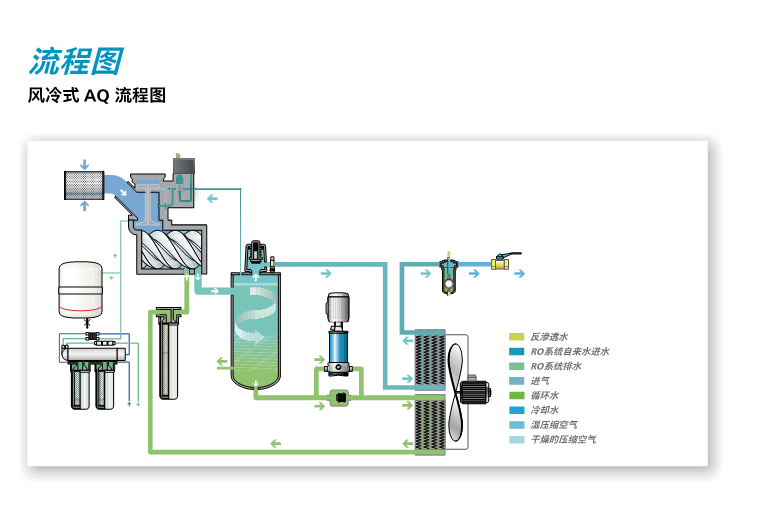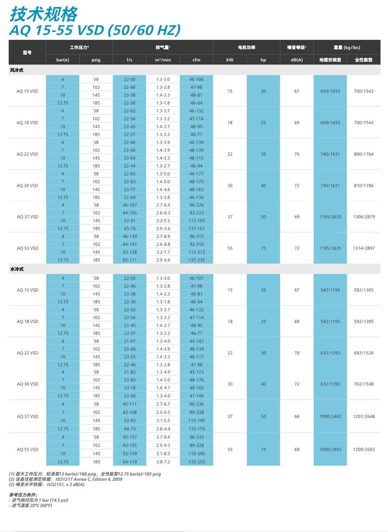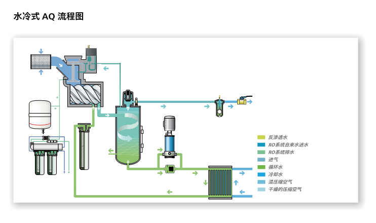 AQ擁有創(chuàng)新的無油技術(shù),噴水螺桿通過ISO8573-1零等級(jí)認(rèn)證設(shè)置空氣純度標(biāo)準(zhǔn),AQ提供風(fēng)冷與水冷,現(xiàn)場型和全性能型,由于水的冷卻效果確保熱量有效的去除從而提高了能源效率。