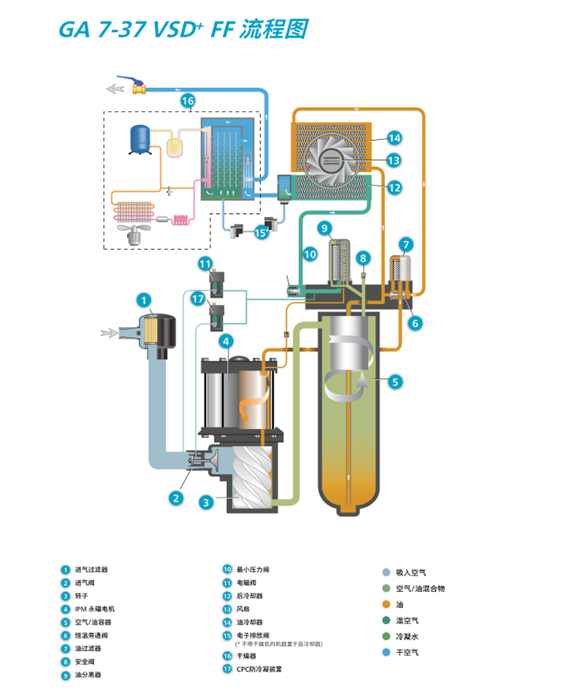 GA FF 全功能機(jī)型集成了干燥機(jī)和油水分離器,以保護(hù)您的壓縮空氣管網(wǎng)。高品質(zhì)空氣可延長(zhǎng)設(shè)備的使用壽命、增加效率并確保產(chǎn)品的質(zhì)量